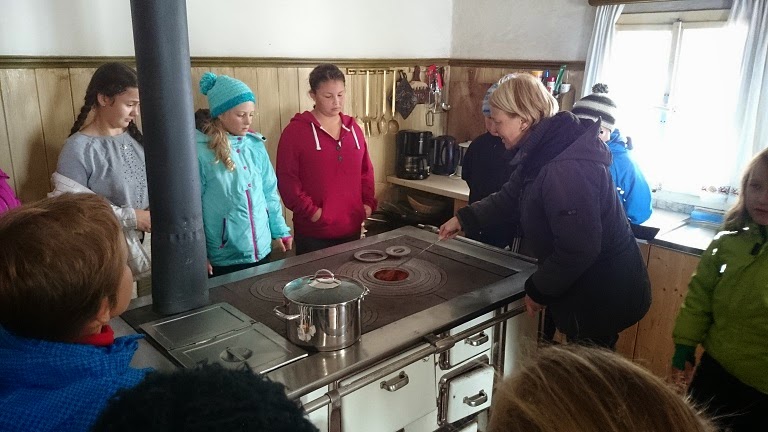 Nach der Ankunft in Moosen/ Westendorf Bahnhof, holt uns ein Taxi ab, ein Teil fährt mit den Autos mit. Der Hochnebel löst sich schnell auf und wir sind schon bei einem der ältesten Schaubergbauernhöfe am Salvenberg: Christine zeigt uns Kochen früher, eine Stube von früher, und viele andere Dinge von früher in ihrem Hof.